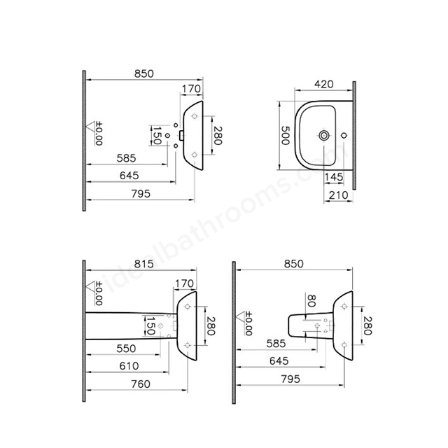 VitrA S20 500 x 420mm Standard Washbasin - White
