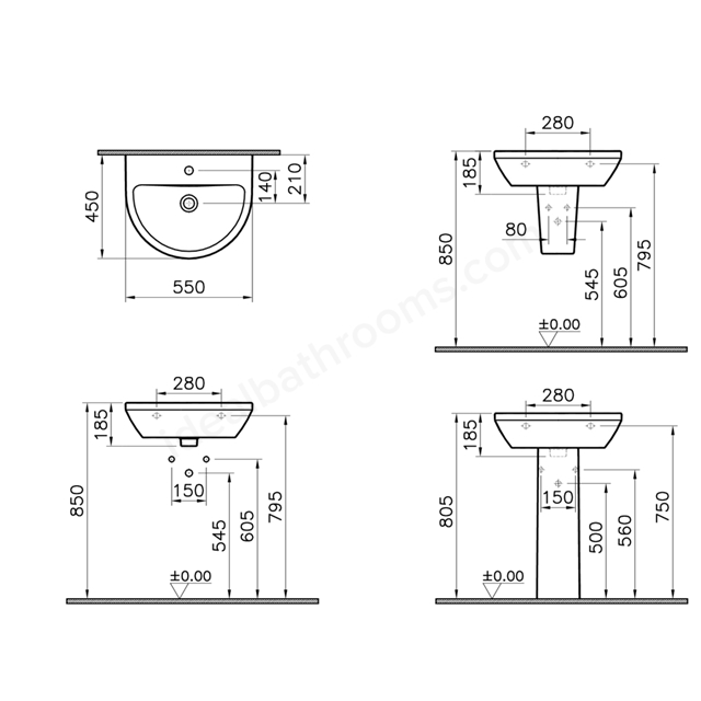 Vitra Integra 550mm In-Countertop Basin 1 Tap Hole