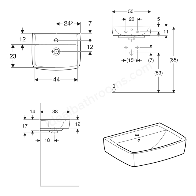 This Twyford 500mmW Alcona Square Basin is a sleek, contemporary ceramic washbasin that brings understated elegance to any bathroom, cloakroom or en-suite.