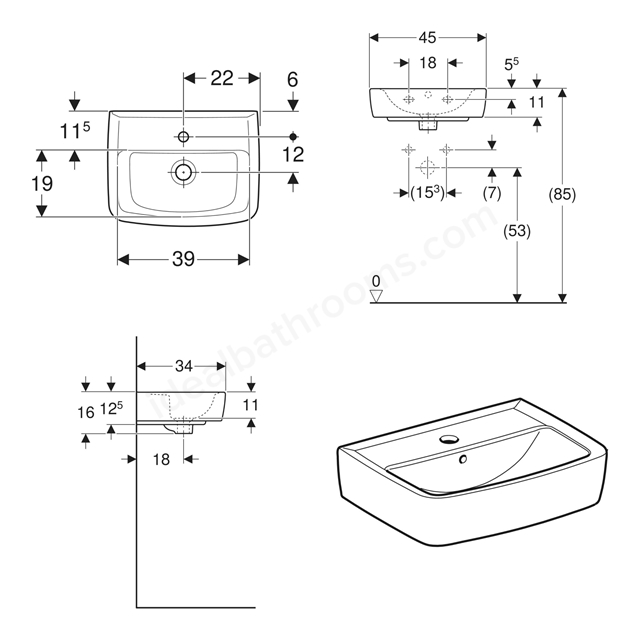 This Twyford 450mmW Alcona Square Basin is a sleek, contemporary ceramic washbasin that brings understated elegance to any bathroom, cloakroom or en-suite.