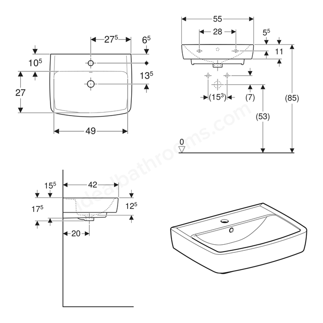 This Twyford 550mmW Alcona Square Basin is a sleek, contemporary ceramic washbasin that brings understated elegance to any bathroom, cloakroom or en-suite.