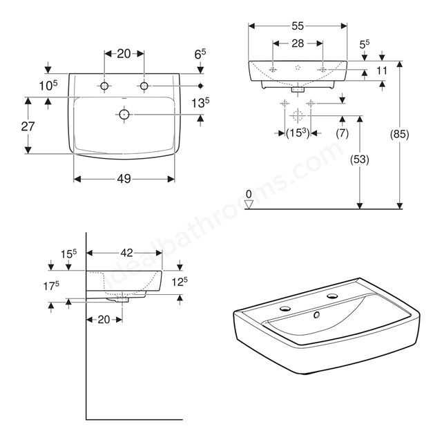 This Twyford 550mmW Alcona Square Basin is a sleek, contemporary ceramic washbasin that brings understated elegance to any bathroom, cloakroom or en-suite.