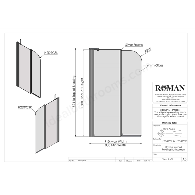 The Haven 6 Curved Folding Bath Screen has one fixed panel and one curved inward folding panel, allowing easy access into the showering area and easy access for cleaning. This inward folding bath screen is suitable for use with power showers for a superior showering experience over the bath.