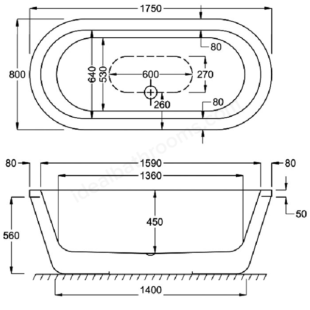 Carron Halcyon Carronite Oval 1750x800mm Freestanding Baths- White Overflow Only