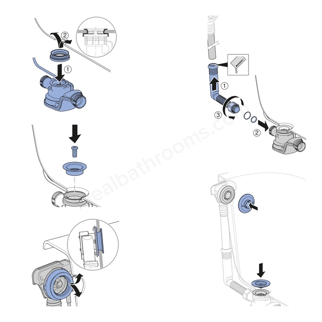 Compatible with tall/large size bathtubs made from steel, acrylic, or cast iron, it includes an integrated overflow, double-sided seals for leak protection, and a trap delivering fast 1.0 l/s drainage.