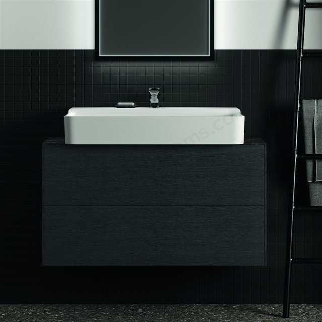 Atelier Conca 100cm wall hung short projection washbasin unit with 2 drawers; no worktop; smoked oak