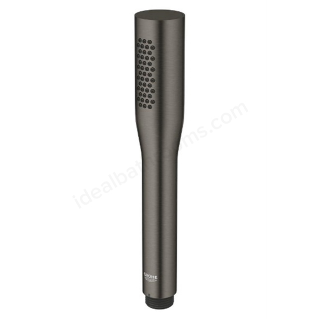 This GROHE Euphoria Cosmopolitan Stick hand shower is a perfect accompaniment to the rest of the cool and contemporary Brushed Hard Graphite bath collection. One of GROHE's most stylish hand showers, it is also packed with cutting edge technology. GROHE DreamSpray ensures the flow of water from every nozzle is even while GROHE EcoJoy cuts water usage but guarantees complete showering satisfaction. The handy silicone SpeedClean nozzles are easy to keep free of dirt and limescale and the Inner WaterGuide prevents the surface of the shower from getting hot as well as protecting the scratch resistant and easy-to-clean GROHE StarLight surface for excellent durability. The hand shower has a universal mount and screws onto all standard shower hoses – so fitting is easy and quick.