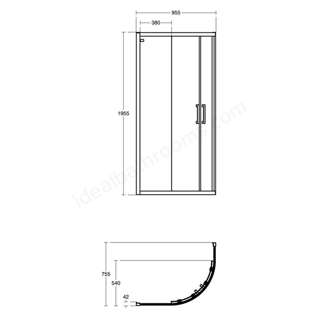 Connect 2 1000 x 800mm Offset Quadrant enclosure, Idealclean,Birght silver finish