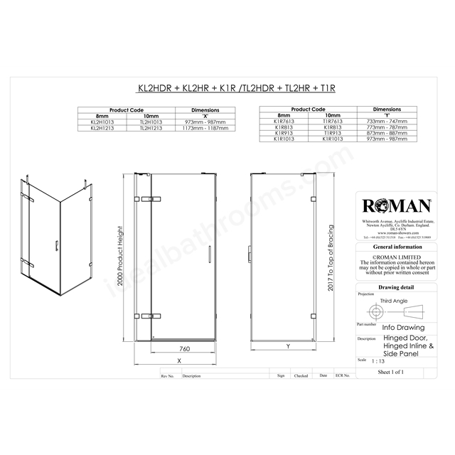 Roman Liberty Inline Hinged Panel corner 1000 - Black