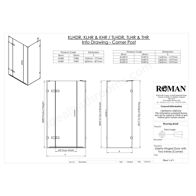 Roman Liberty Inline panels for Corner Fitting 1200 - Nickel