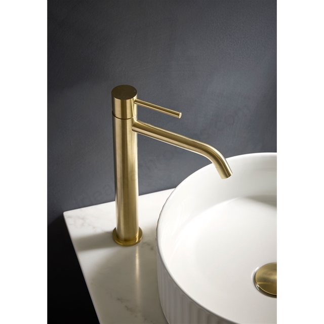 A taller redesign of our standard lever basin mixer created for use with countertop basins or for those who appreciate extra clearance. Built from high-quality materials and engineered for smooth water flow, it delivers both style and substance. Finished in a decadent Brushed Brass.