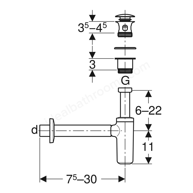 This complete set of Geberit washbasin drain with trap; external waste plug with push actuation; horizontal outlet has everything you need to get your basin up and running
