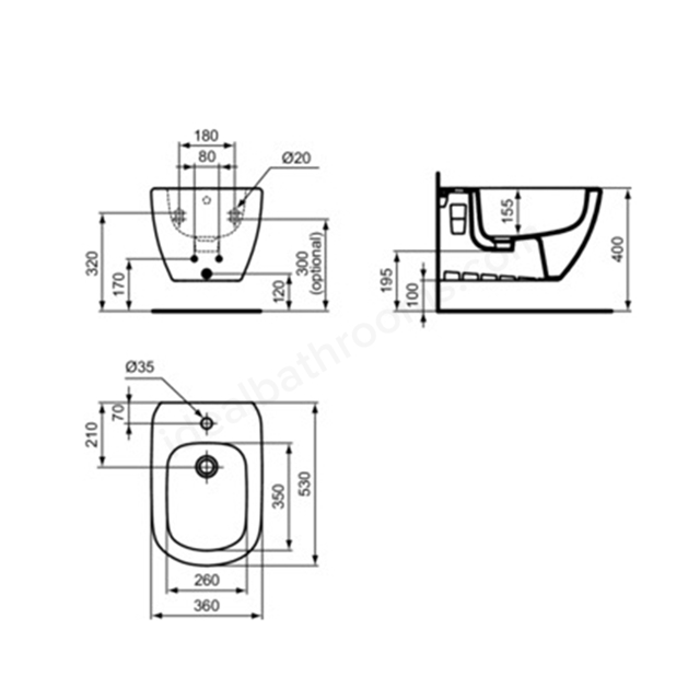Ideal Standard Tesi 1 Taphole Wall Mounted Bidet