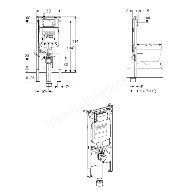 This Slimline Geberit Sigma Concealed Cistern 8cmD with a construction height of 114cm is perfect for when space is at a premium, suited for quick and easy installation in part-height or room-height pre-wall or partition walls and for use with wall hung toilet pans with a projection up to 700mm.