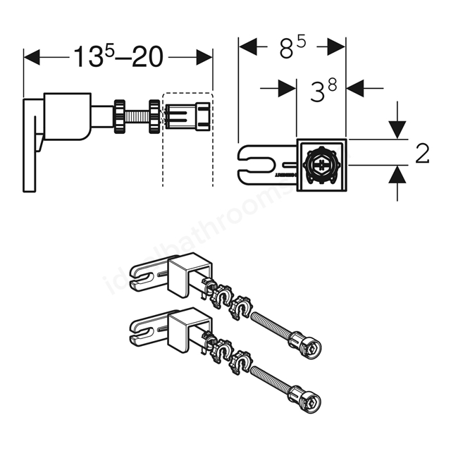 With this flexibility these anchors when installing a Geberit Frame allow 16 different fixing locations and variations (see images) which allows you to work around existing pipes or fixings.