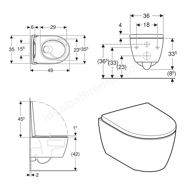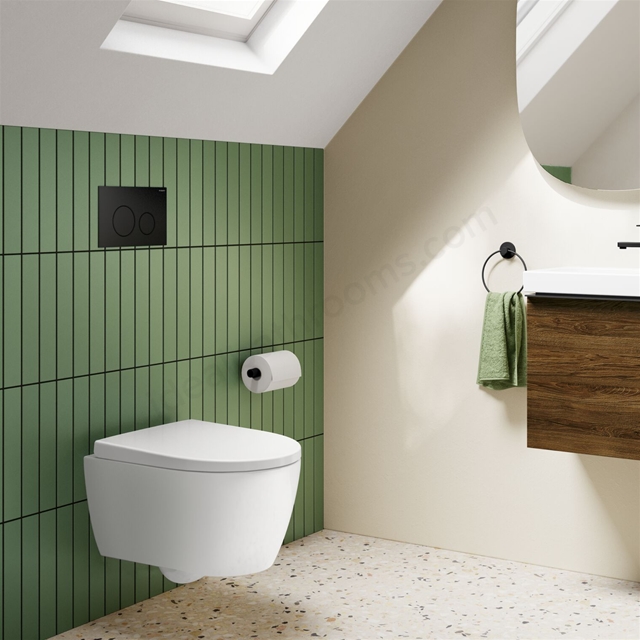 Its compact projection (49cm) makes it ideal for smaller bathrooms, en-suites, and cloakrooms, the shrouded design and concealed fixings create a clean, minimalist look.