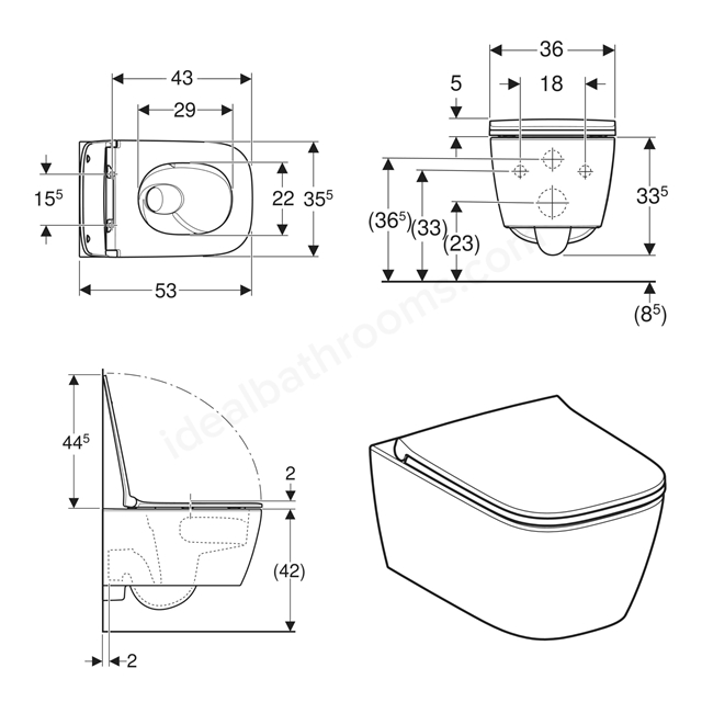 - Rimless WC Design: Hygienic, easy-to-clean bowl with no hidden areas for bacteria