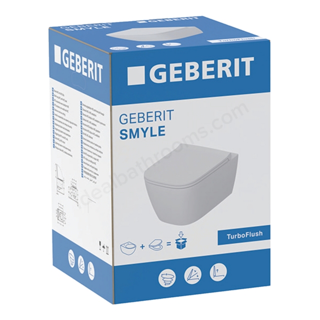 This Geberit Smyle Square Wall-Hung TurboFlush Toilet is a rimless toilet combining sleek square styling with advanced hygiene technology.