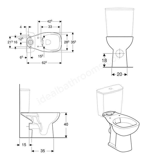 Pair this toilet pan with a matching Twyford Square Cistern (AR2442WH) and Square Soft-Close Seat (AR7951WH) for a complete solution.